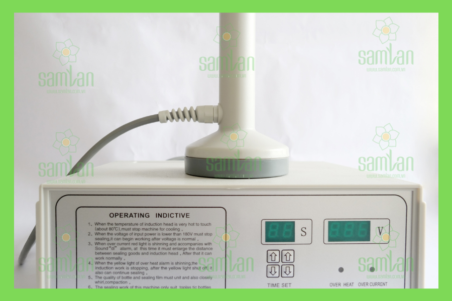 - Phương thức vận hành: khi chai đi qua bộ phận cảm ứng điện từ, màng nhôm đặt sẵn trong nắp chai sẽ bị từ hóa nóng chảy và hàn dính miệng chai.